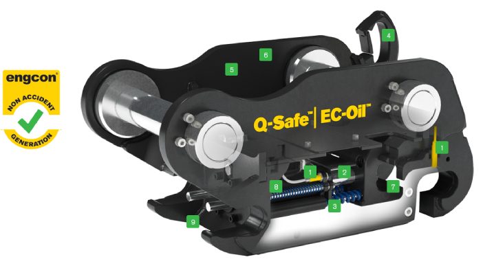 Engcon’s award winning Q-Safe™ system makes their tiltrotators one of the safest quick couplers on the market, where the risk of incorrect coupling has been designed out or the product completely. With Q-Safe™ fitted to an excavator, the bucket or tool must have ground contact that exerts a given pressure. In other words, buckets, tools and attachments cannot be removed whilst in the air, this prevents the risks from unsafe connections & dropped attachments.