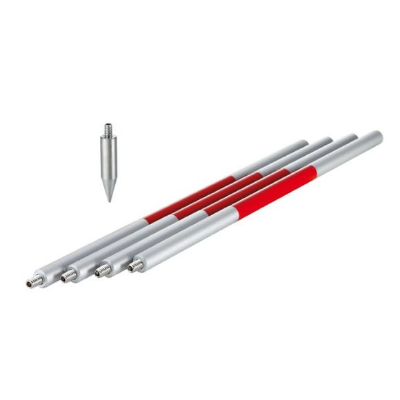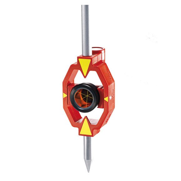 Leica Mini prism [GMP111] mounted in polymer holder with 1/4″ thread fittings. Includes mini prism, circular bubble, GLS115 four-section pole and point.