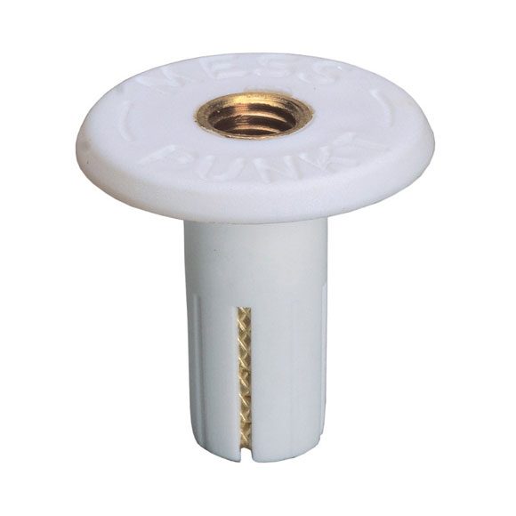 A brass expansion sleeve with a PVC plastic coating for high visibility. M8 female thread. Head diameter: 30mm. Length: 30mm. Shank diameter: 12mm.