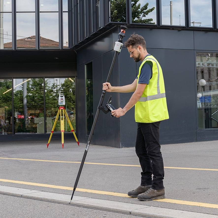 The Tilt Compensation feature allows point measurements with an arbitrary aligned pole, and therefore increases flexibility and productivity in the field to enable even upside-down and nearby hidden point measurements.