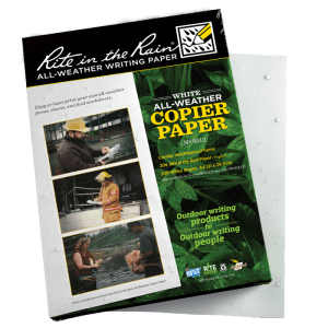 Copy or laser print your own all weather forms, charts, maps, and worksheets on patented Rite in the Rain Copy Paper. Now you can have the convenience of using your existing data sheets on a paper that can survive in any weather condition.