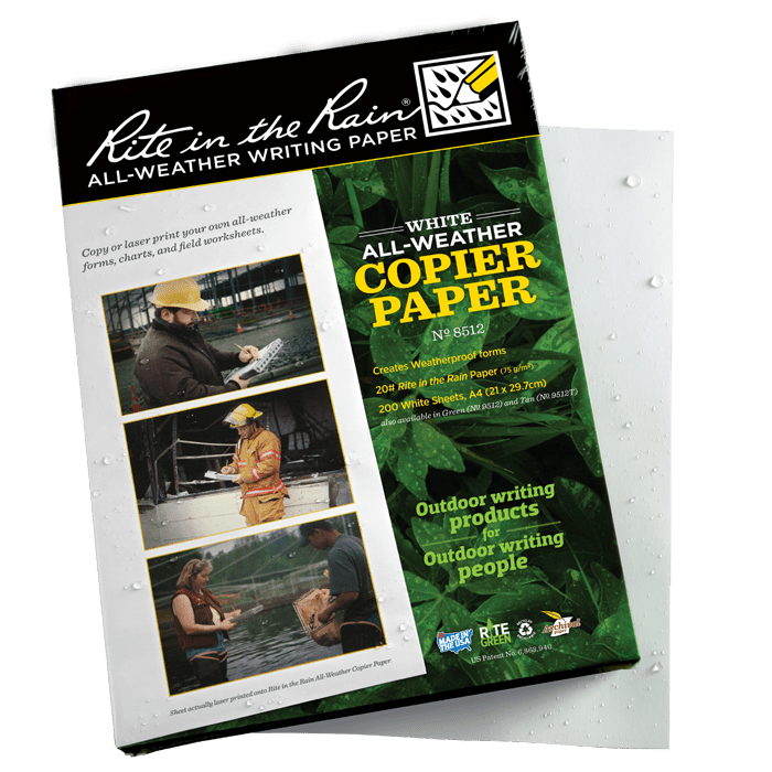 Copy or laser print your own all weather forms, charts, maps, and worksheets on patented Rite in the Rain Copy Paper. Now you can have the convenience of using your existing data sheets on a paper that can survive in any weather condition.