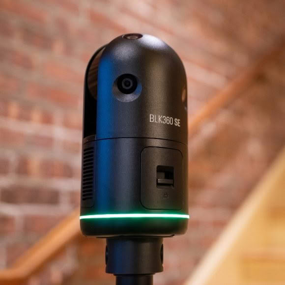 The Leica BLK360 SE is a lightweight, compact imaging laser scanner that efficiently captures point cloud data and spherical imagery of any environment. This edition of the BLK360 maintains the signature one-button operation, user-friendly functionality and software integration.
