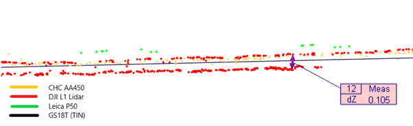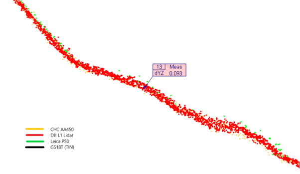 The ‘layering’ of overlapping data commonly seen in the DJI L1 data was not apparent in the AlphaAir450. This is thanks to the combination of a higher quality IMU and better adjustment in the post-processing software.