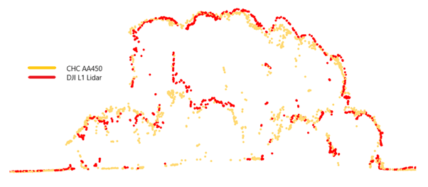 Again, the AlphaAir450 showed no evidence of the ‘layering’ seen in the DJI L1 data.