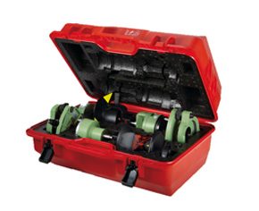 Carries up to 2x Prisms, 2x Holders, 2x Tribrachs and 2x Carriers.
